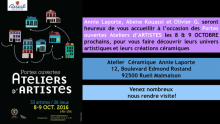 Annie Laporte ouvre son atelier les 8 et 9 octobre de 14h à 19h. Bienvenue au 12 bd Edmond Rostand à Rueil Malmaison. Abene Kouassi, Olivier G et Annie Laporte sont très heureux de vous accueillir pour vous faire découvrir leurs univers céramiques. #gallery-4 { margin: auto; } #gallery-4 .gallery-item { float: left; margin-top: 10px; text-align: center; width: 50%; } #gallery-4 img { border: 2px solid #cfcfcf; } #gallery-4 .gallery-caption { ...
