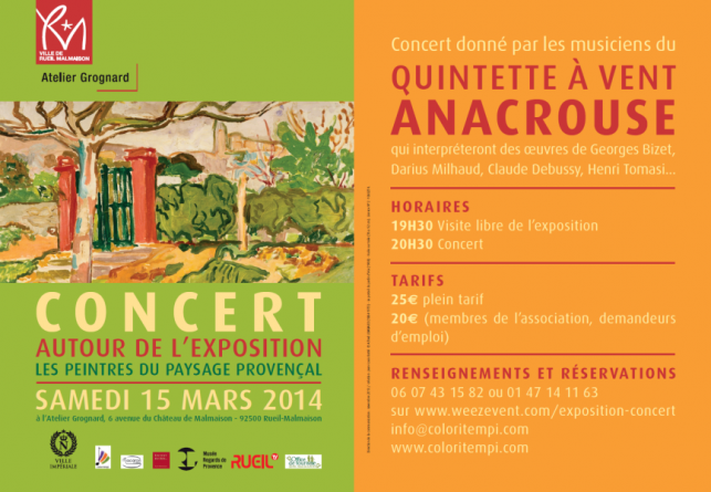 Colori tempi vous propose un évènement à ne pas manquer : dans le cadre de l’exposition « Les peintres du paysage provençal » à l’Atelier Grognard, une visite libre de l’exposition sera suivie par un concert thématique