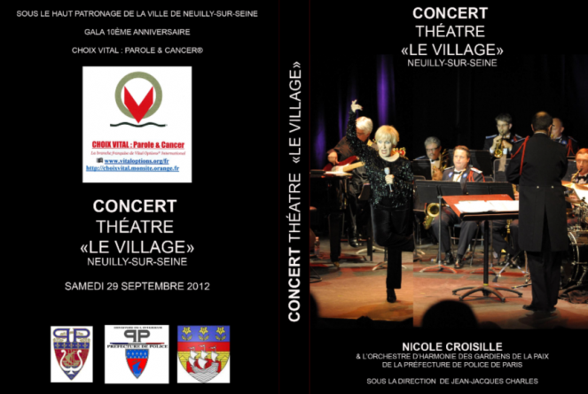 Suite au Gala du 10ème anniversaire de CHOIX VITAL : Parole & Cancer® présidée par Claude-Alain Planchon, sortie du coffret de 2 DVD « Nicole Croisille accompagnée du Big Band de la Musique des Gardiens de la Paix » .