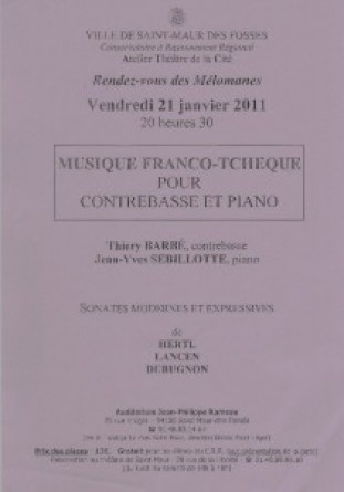 Concert contrebasse et piano avec Thierry Barbé et Jean-Yves Sebillotte à l’auditorium du conservatoire de St Maur, 25 rue Krüger/rond point Liberté, St Maur des Fossés, station RER « St-Maur Le